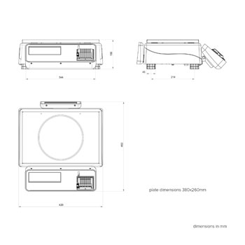 | GPEATHS615 | Waage GPE ATHENA mit Wägebereich 6/15 Kg kg und Ziffernschritt 2/5 g, mit Gehäuse aus ABS und Lastplatte aus Edelstahl 370x310mm mm, mit doppeltem, weiß hinterleuchtetem LCD-Display, wasserdichter Tastatur mit 62 PLU-/Funktionstasten und integriertem Thermodrucker. |